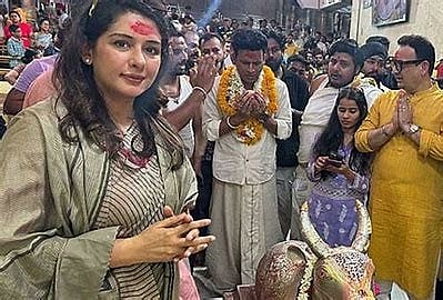 मनोज बाजपेयी और निर्माता विनोद भानुशाली, समीक्षा शैल ओसवाल और विक्रम खाखर सहित 'भैया जी' की टीम ने मंदिर में आशीर्वाद मांगा।