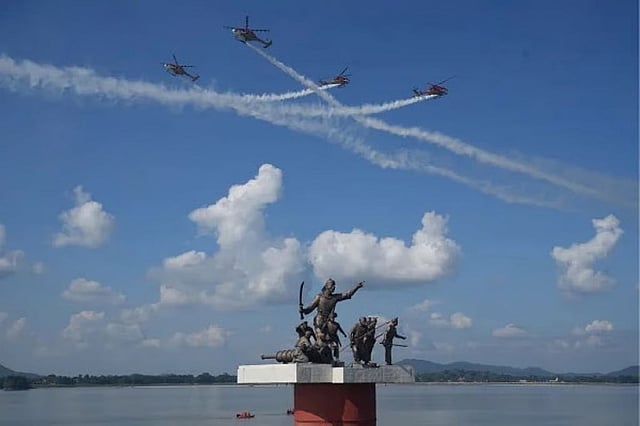 दर्शकों को भारतीय वायुसेना के कुछ सबसे उन्नत विमानों, जिनमें राफेल, हल्के लड़ाकू विमान तेजस और प्रसिद्ध सूर्यकिरण एरोबैटिक टीम (एसकेएटी) शामिल थे, के लुभावने करतब देखने को मिले। इन विमानों ने नदी के ऊपर तेज़ गति के करतब और बेजोड़ प्रदर्शन किए, जिससे आसमान गर्जना से भर गया और दर्शक दंग रह गए।