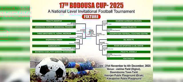 तिनसुकिया: अखिल भारतीय फुटबॉल महासंघ (एआईएफएफ) द्वारा मान्यता प्राप्त 17वां बोडूसा कप राष्ट्रीय स्तरीय आमंत्रण फुटबॉल टूर्नामेंट 21 नवंबर से तिनसुकिया जिले के चार अलग-अलग स्थानों पर शुरू होने वाला है। इस टूर्नामेंट का आयोजन बोडूसा स्पोर्ट्स क्लब द्वारा असम फुटबॉल संघ और अखिल मोरन छात्र संघ की देखरेख में किया जा रहा है।