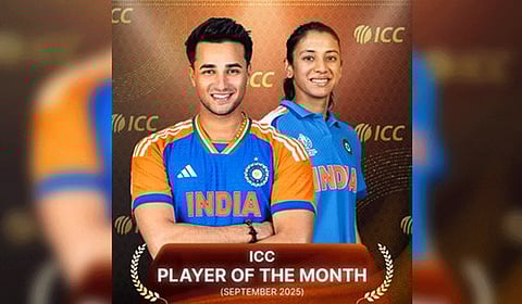 नई दिल्ली: भारतीय अभिषेक शर्मा और स्मृति मंधाना को सितंबर के लिए आईसीसी प्लेयर ऑफ द मंथ चुना गया है। 25 साल के अभिषेक को एशिया कप में उनके विस्फोटक प्रदर्शन के लिए पुरस्कृत किया गया, जहां उन्होंने सात मैचों में 44.85 की औसत और 200 के धमाकेदार स्ट्राइक रेट से 314 रन बनाए।
